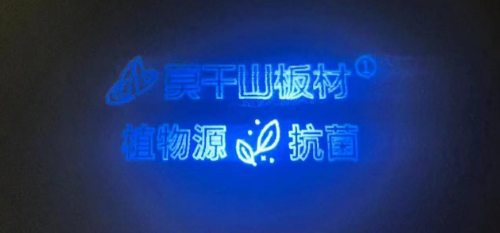 每一張莫干山板材生態板表面都擁有防偽水印,自然光線下肉眼不可見,使用紫外燈照射,即可顯現。(不同產品對應不同的防偽水印)。